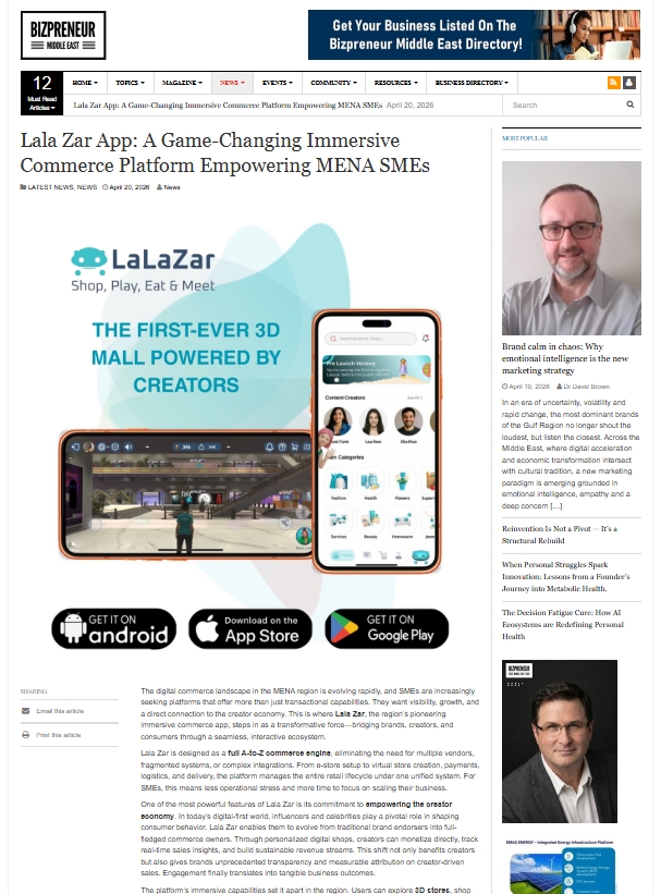The digital commerce landscape in the MENA region is evolving rapidly, and SMEs are increasingly seeking platforms that offer more than just transactional capabilities. They want visibility, growth, and a direct connection to the creator economy. This is where Lala Zar, the region’s pioneering immersive commerce app, steps in as a transformative force—bridging brands, creators, and consumers through a seamless, interactive ecosystem.